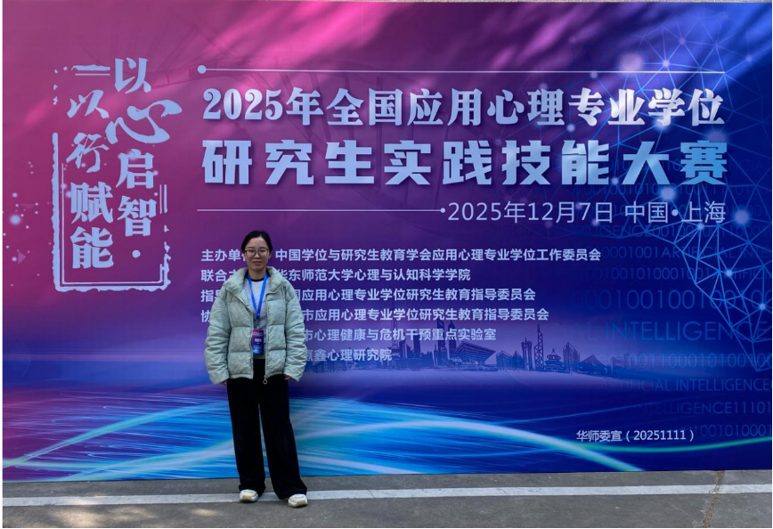 2025年12月7日 ,由中国学位与研究生教育学会应用心理专业学位工作委员会、华东师范大学联合主办,全国应用心理专业学位研究生教育指导委员会指导的2025年全国应用心理专业学位研究生实践技能大赛决赛在上海举行。作为国内应用心理领域最具权威性的专业赛事,本届大赛吸引了来自全国146所高校的优秀学子参与角逐。