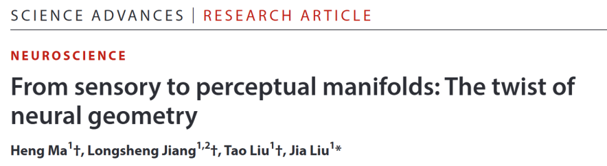 12月10日,清华大学心理与认知科学系刘嘉课题组在《Science》子刊《Science Advances》发表题为“From sensory to perceptual manifolds: The twist of neural geometry”的研究论文。该研究利用运动诱发错觉轮廓的识别任务,研究猕猴次级视觉皮层(V2)中的群体放电活动,阐明了大脑通过扭转操作(Twist Operation)升维神经表征空间,将在物理世界中线性不可分的刺激,转换为在心理世界中可线性区分的知觉类别。