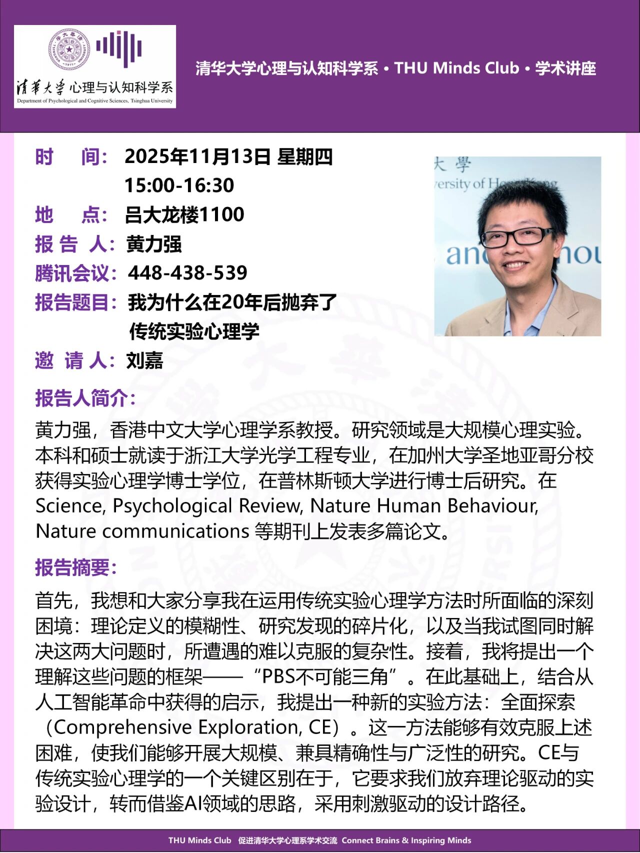 讲座预告 | 我为什么在20年后抛弃了传统实验心理学