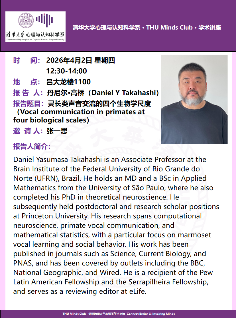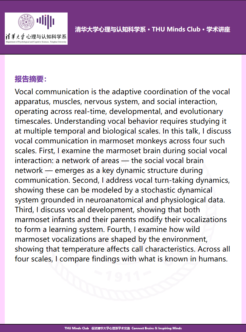 心理百年 | 讲座预告:灵长类声音交流的四个生物学尺度(Vocal communication in primates at four biological scales)