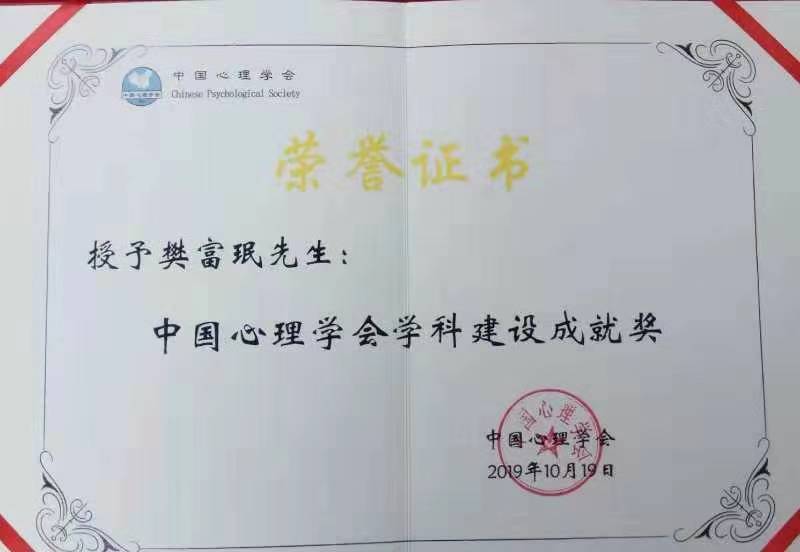 “中国心理学会学科建设成就奖”是由中国心理学会各分会按照总会规定的条件提出建议人选,经中国心理学会常务理事会审定通过后颁发,主要授予对中国心理学事业的发展有突出贡献、长期在各专业中发挥主要作用、学术上具有全国性影响的心理学家。樊富珉教授此次获奖,是中国心理学会对我系樊富珉教授早期所开展工作的认可和肯定,也是中国心理学界对我系临床心理学学科在国内领军地位的肯定,对于推动我系创建一流学科建设有着特别重要的积极意义。