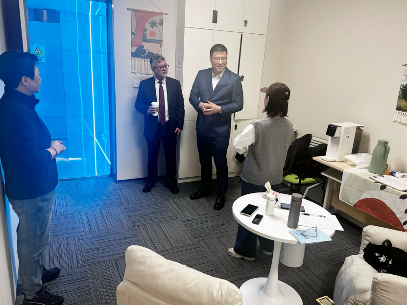 报告结束后,古特雷斯在严超赣陪同下考察了清华大学文化心理学研究中心。该中心立足中国传统文化资源,积极推动其与现代心理学的深度融合,探索面向全球心理健康挑战的整合式服务与研究路径,获得他的高度评价。考察期间,古特雷斯重点了解了中心支持的“心花人生”抑郁症研究与干预计划,现场观摩项目的心理干预实验,并与参与实验的心理咨询师和来访者深入交流。随后,他还考察了“心花人生”项目中的抑郁症经颅磁刺激(Transcranial Magnetic Stimulation, TMS)干预环节,对依托抑郁症脑影像大数据开展的个体化TMS靶点精准干预表现出浓厚兴趣。对于中心从生理(TMS)、心理(心理咨询)到社会支持(子女与父母共同参与心理干预)协同推进抑郁症整合干预的创新模式,他给予充分肯定,并表示期待未来与国际心理科学联合会心理健康工作组开展更深入的交流与合作。