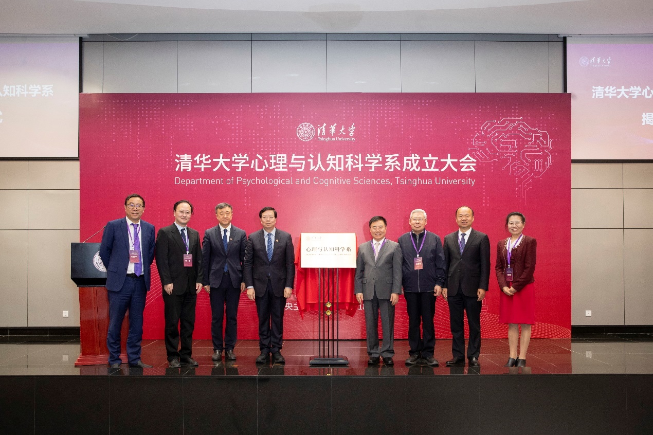 At the ceremony, Yong Qiu, Zhimin He, Hongwen Yao, Chongde Lin, Bin Yang, Yanjie Su, Jia Liu, Director of the Department of Psychological and Cognitive Sciences, and Kaiping Peng, Professor of the Department of Psychological and Cognitive Sciences, jointly unveiled the plaque for the Department of Psychological and Cognitive Sciences.